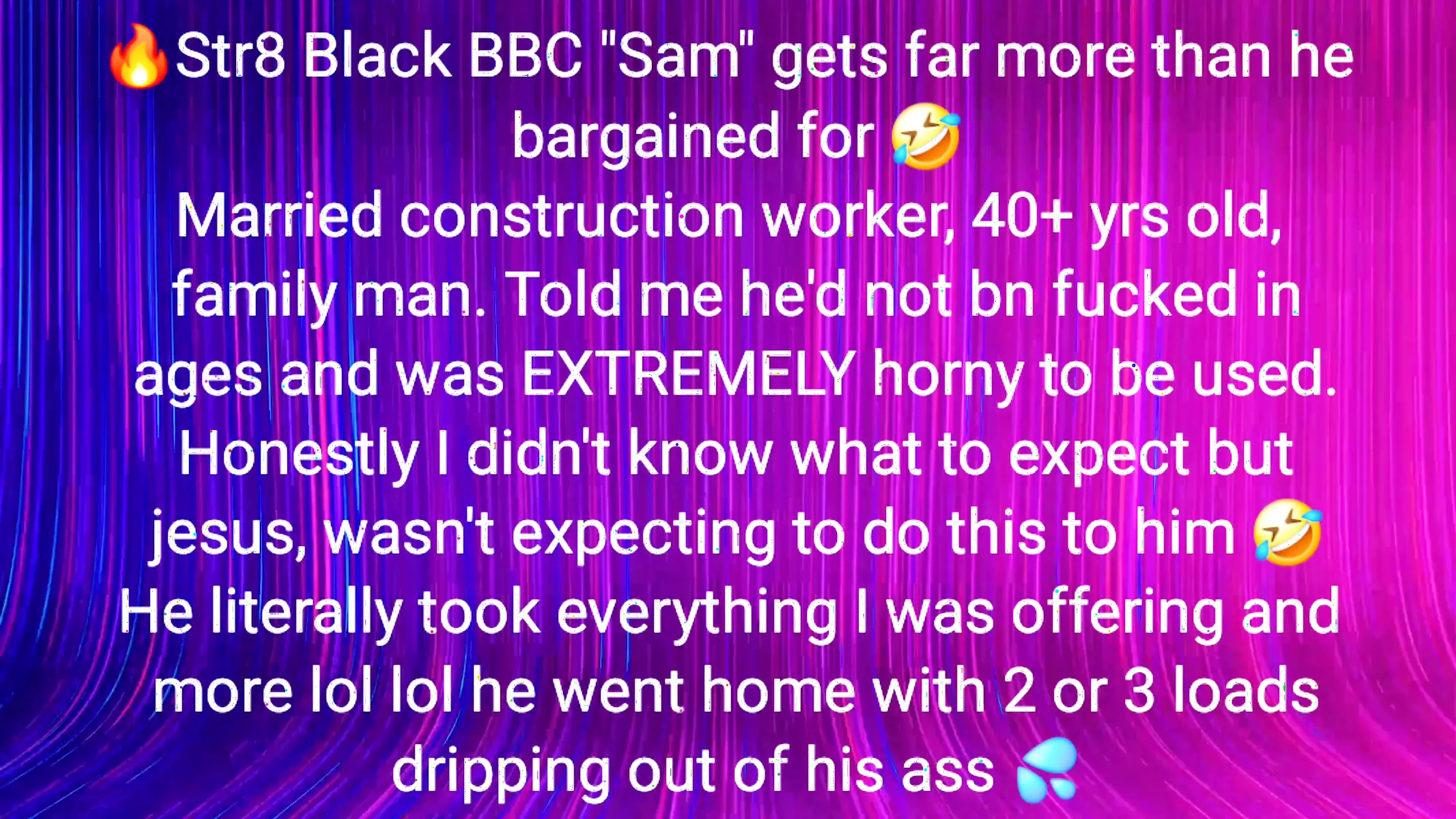 . Married construction worker, 40+ yrs old, family man. Told me he'd not bn fucked in ages and was EXTREMELY horny to be used. Honestly I didn't know what to expect but jesus, wasn't expecting to do this to him