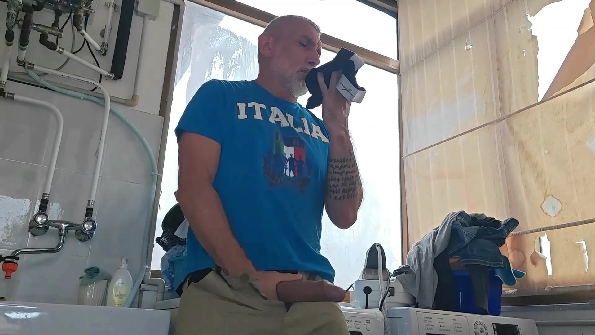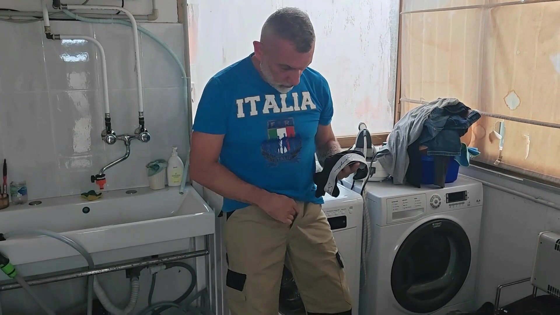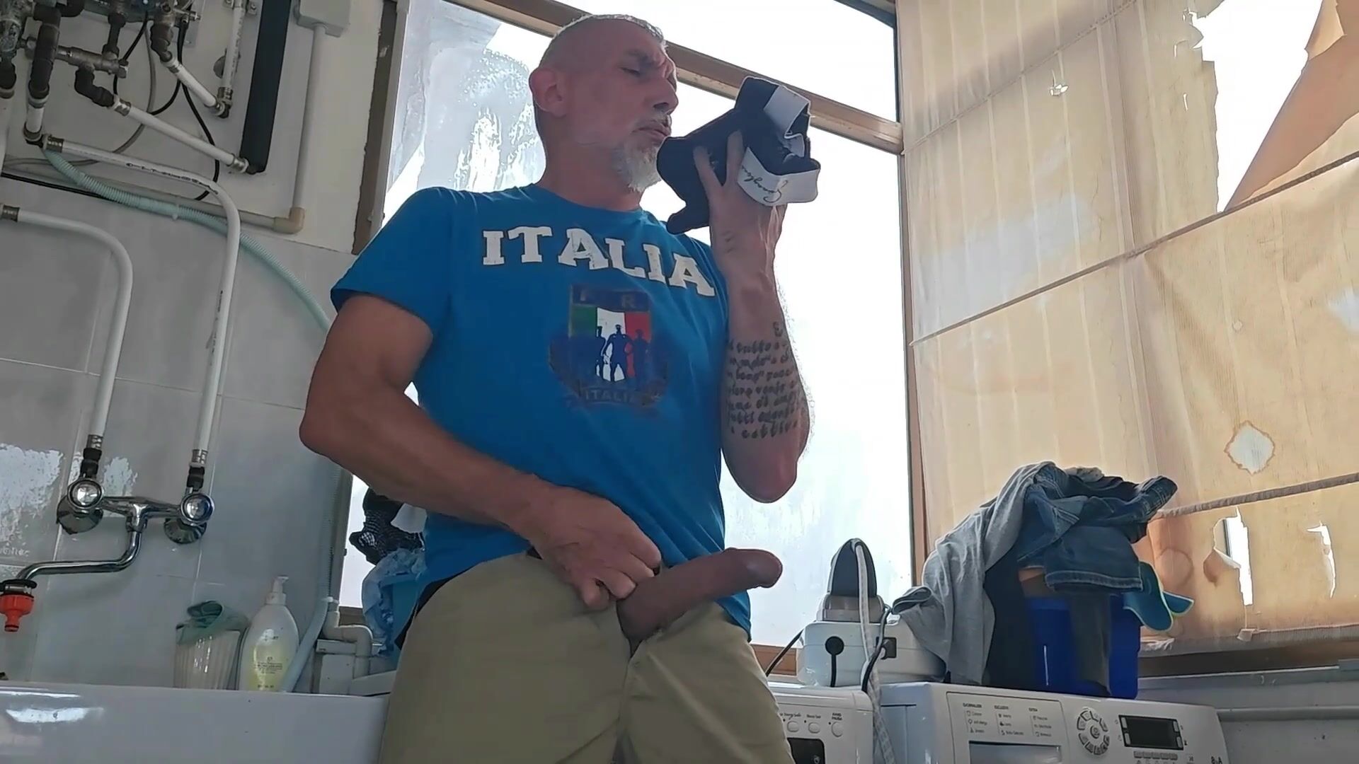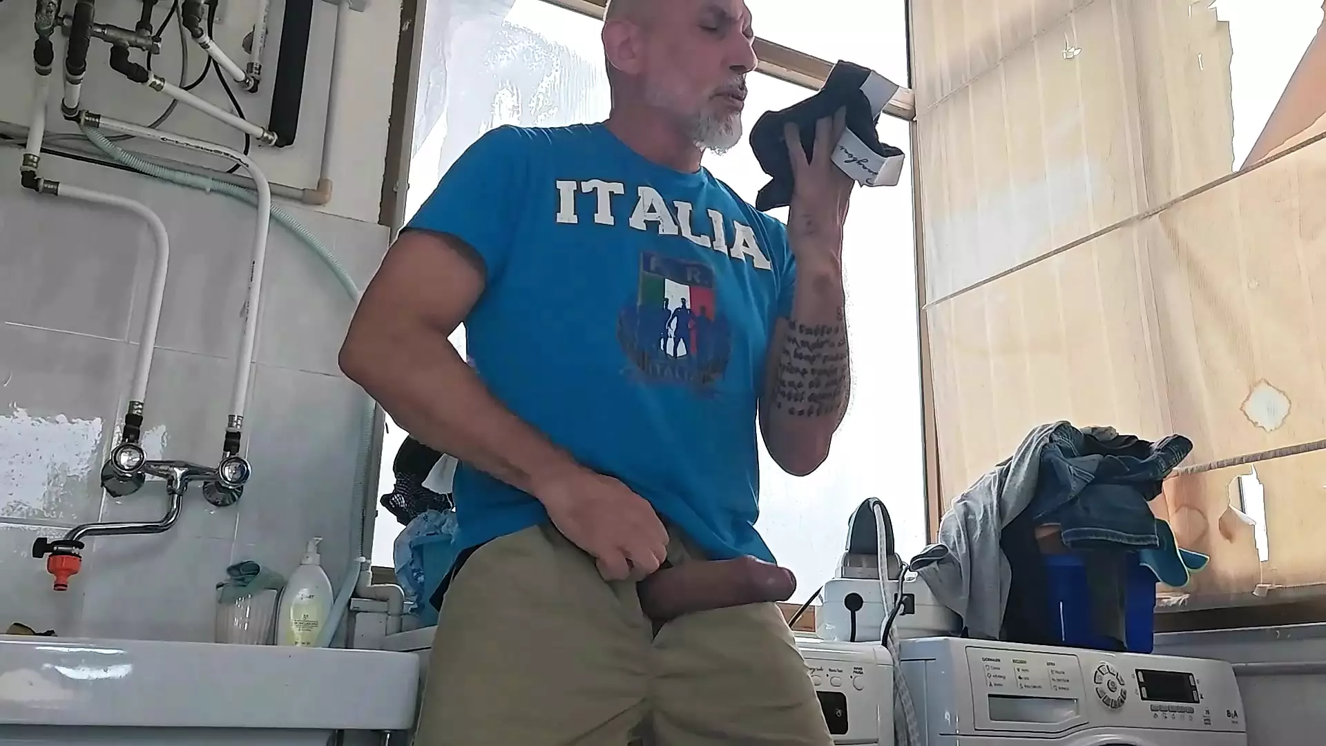 OLD MATURE HUNG BIG COCK REPAIRMAN IS FIXING THE WASHMACHINE FOR A HORNY COUPLE