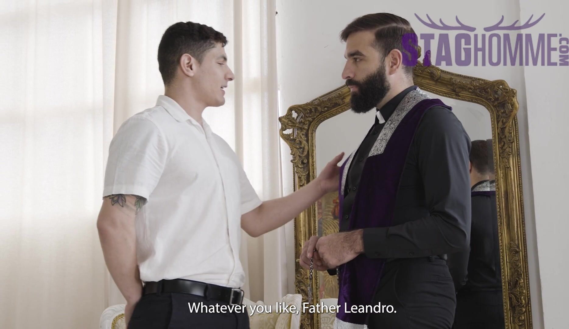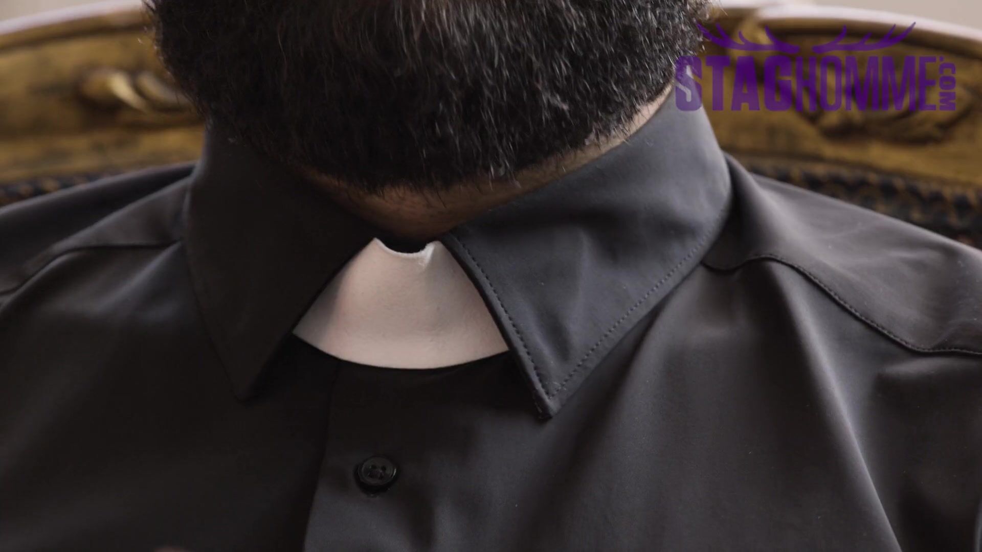 . Staghomme Hairy semi-clothed Clergyman breeds smooth naked bottom