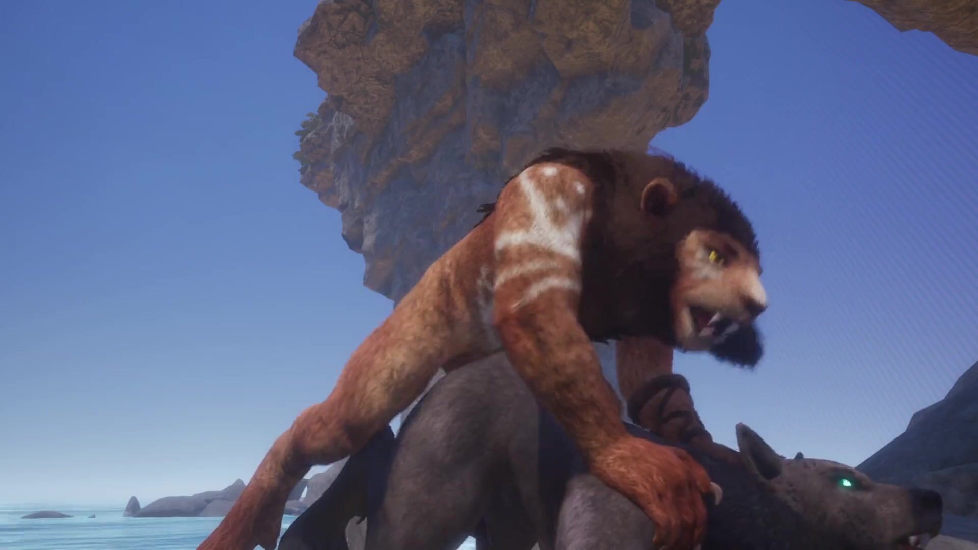 GAY LION & WOLF FUCK BY THE BEACH AND MAKE LOTS OF CUM (FURRY ORGASM IN MOUTH) / WILD LIFE FURRIES