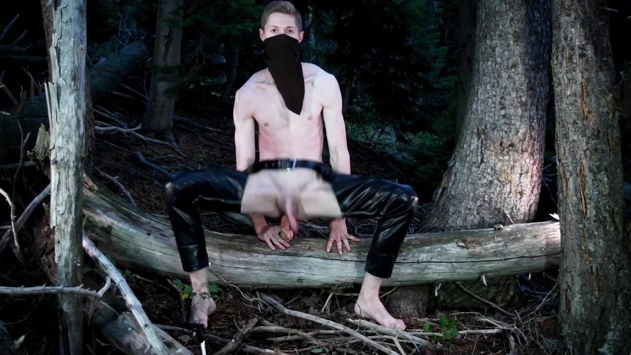 . A Republican biker politician decides to check himself off while in the Great American forest in the public view. All while wearing some biker BDSM clothing he self fucks and gives himself hand jobs.