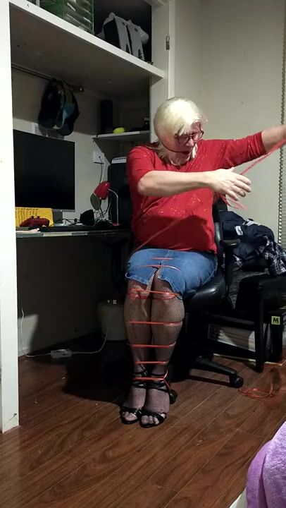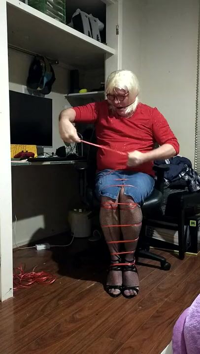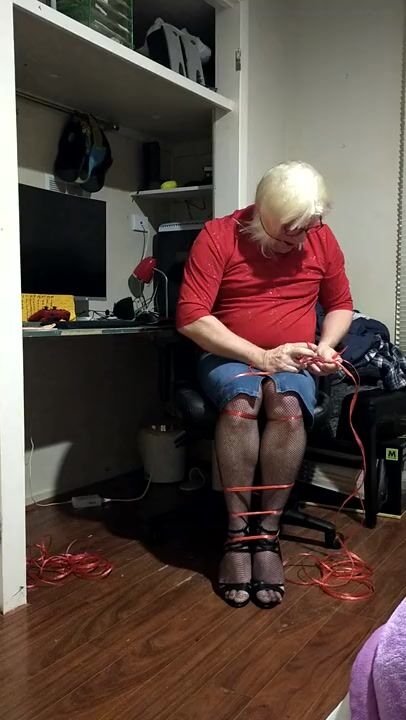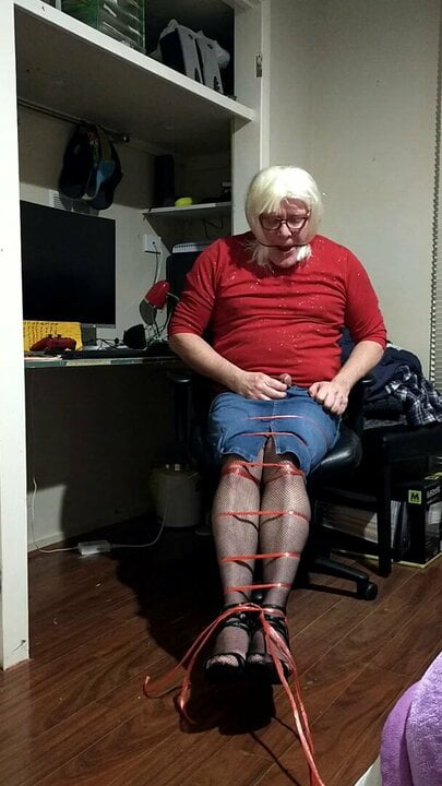 . Could not help myself had to tie myself up again miss the feeling of rope so made sure my cock was all tied up this time and pulled tight felt great but be better if you men were on my cock