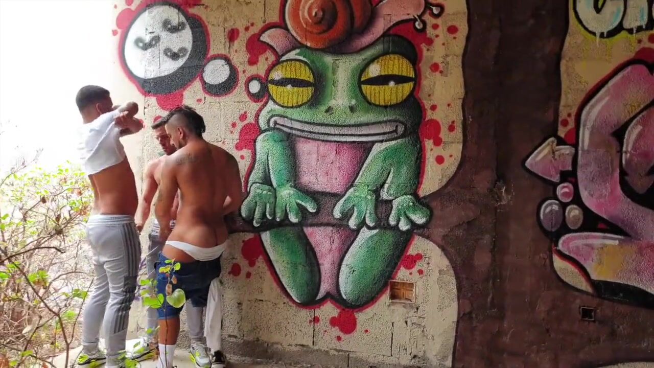 Three horny French barebackers