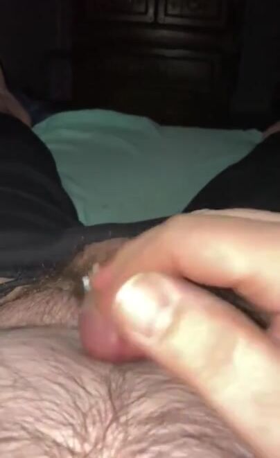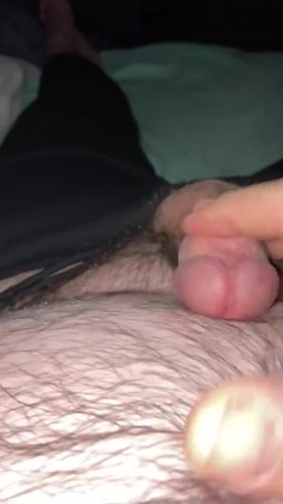 Guy plays with his uncircumcised dick and rubs cum into hairy pubis