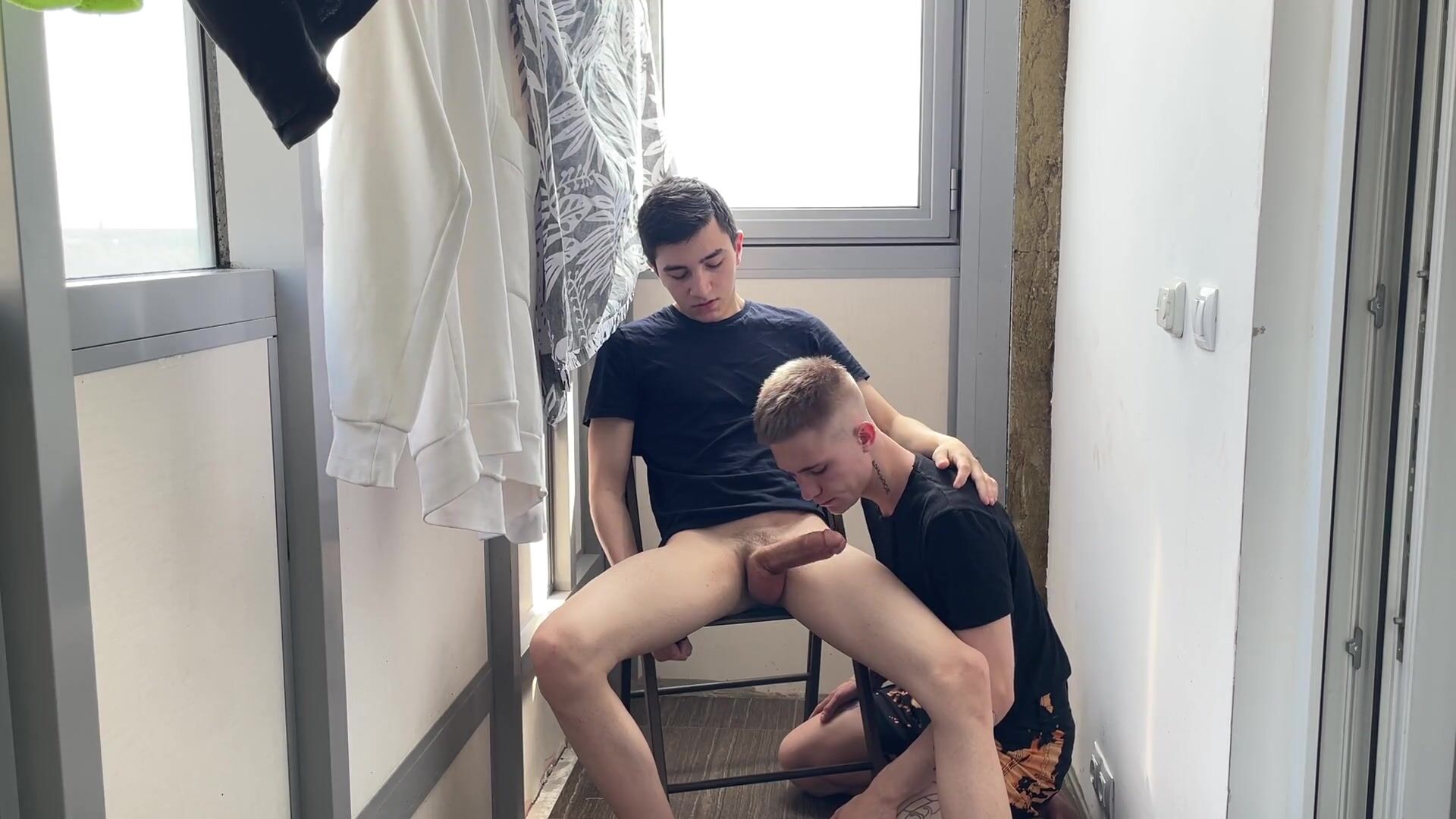 TWO INEXPERIENCED GUYS FUCK ON THE BALCONY